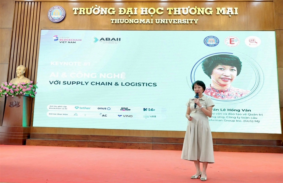 Tại hội thảo, ThS. Trần Lê Hồng Vân, chuyên gia tư vấn tại Gerson Lehrman Group, giảng viên Viện ABAII đã chia sẻ những tác động mạnh mẽ của AI trong việc tối ưu hóa chi phí logistics. Bà dẫn chứng, ứng dụng AI giúp các doanh nghiệp cắt giảm từ 15 – 25% chi phí logistics thông qua tối ưu hóa lộ trình vận chuyển và quản lý hàng tồn kho. AI còn nâng cao hiệu quả vận hành kho bãi lên tới 60% và giảm thời gian xử lý đơn hàng đến 35%, giúp doanh nghiệp tăng năng suất và cải thiện chất lượng dịch vụ. Bên cạnh đó, tiềm năng của công nghệ Blockchain trong việc thay đổi toàn diện chuỗi cung ứng toàn cầu đã được nhấn mạnh thông qua ví dụ cụ thể từ Deutsche Post DHL Group – một trong những tập đoàn logistics lớn nhất thế giới với quy mô hoạt động tại hơn 220 quốc gia và vùng lãnh thổ.