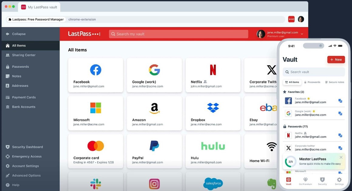 Hình 1. Công cụ quản lý mật khẩu LastPass