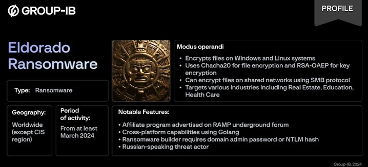Trong cảnh báo mới gửi tới các cơ quan, tổ chức, doanh nghiệp trên toàn quốc là thành viên mạng lưới ứng cứu sự cố an toàn thông tin mạng quốc gia, Trung tâm Ứng cứu khẩn cấp không gian mạng Việt Nam – VNCERT/CC thuộc Cục An toàn thông tin (Bộ TT&TT) thông tin, Eldorado là một loại ransomware dạng dịch vụ – RaaS mới, xuất hiện vào tháng 3/2024 và đi kèm với các biến thể dành cho trình quản lý ảo VMware ESXi và hệ điều hành Windows.