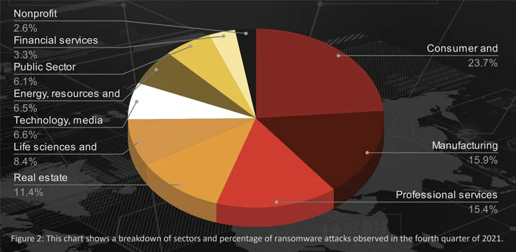 Các cuộc tấn công đánh dấu sự gia tăng lần lượt 110 và 129 cuộc tấn công từ quý 3 và quý 2 năm 2021. Tổng cộng, 34 biến thể ransomware khác nhau đã được phát hiện trong khoảng thời gian ba tháng từ tháng 10 đến tháng 12 năm 2021.