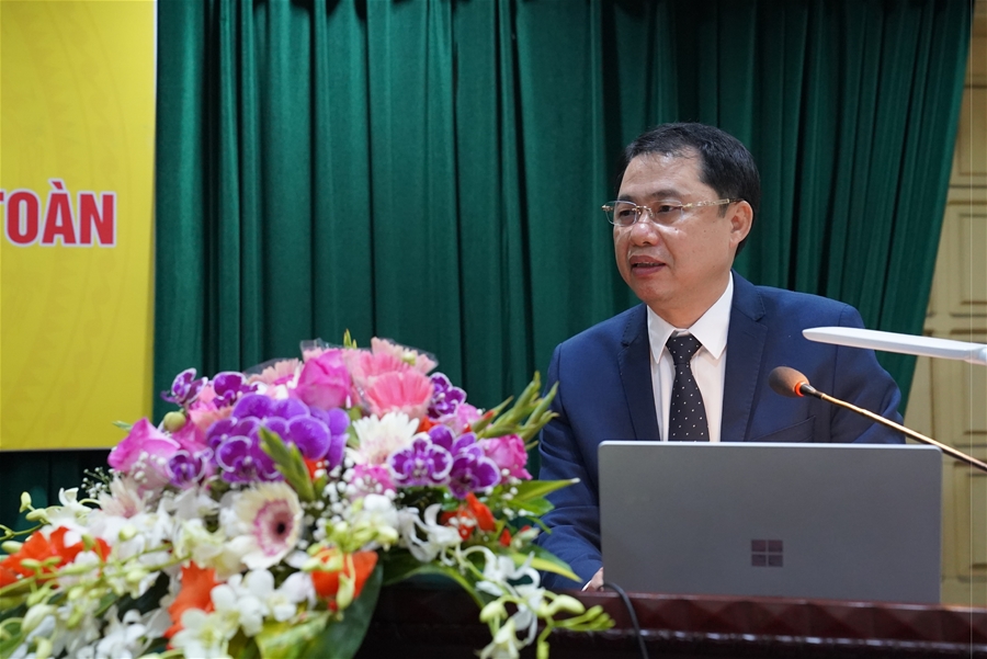 Đồng chí Đỗ Việt Thắng, Phó giám đốc Trung tâm CNTT&GSANM trình bày báo cáo sơ kết hoạt động giám sát ATTT của Ban Cơ yếu Chính phủ năm 2021