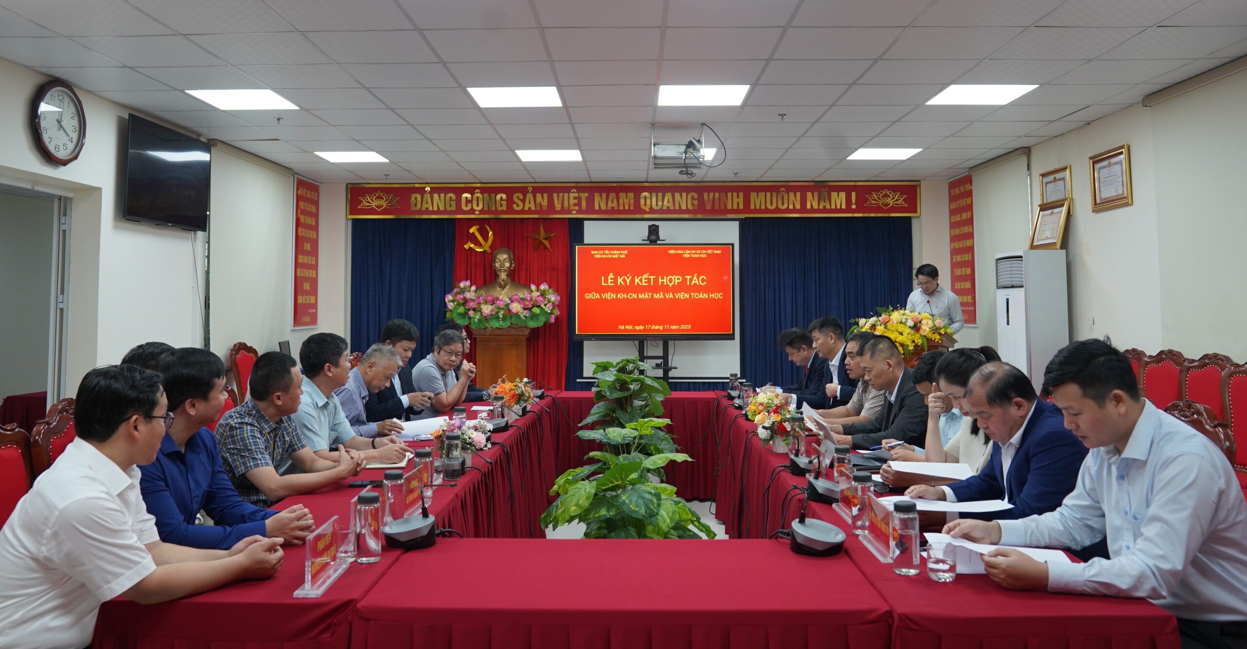 Đại diện Viện Toán học, có GS. TSKH. Đoàn Thái Sơn, Viện trưởng; PGS. TS. Nguyễn Tất Thắng, Phó Viện trưởng; GS. TSKH. Đinh Nho Hào, Chủ tịch Hội đồng Khoa học.